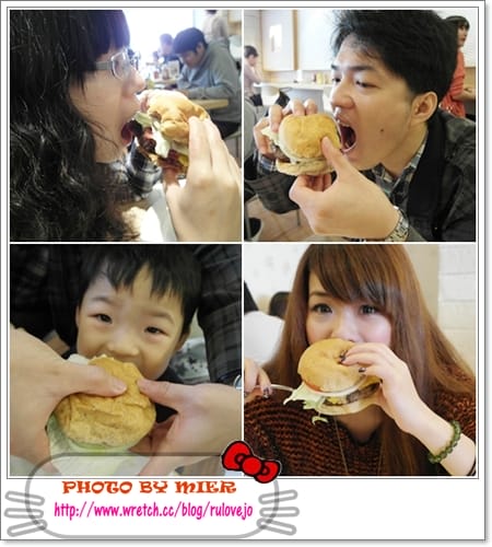看我們四個人張大嘴在吃漢堡,就知道這間漢堡有多大了…. 哈哈!不計形象吃起來就了解這間漢堡有多好吃了 我出賣了我哥跟大嫂,不知道他們下禮拜回家會不會….對我怎麼樣?!噗 在三月初…